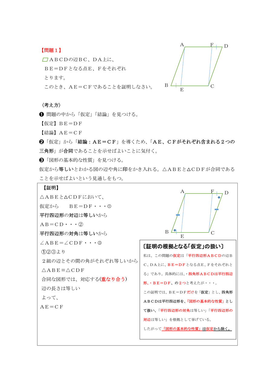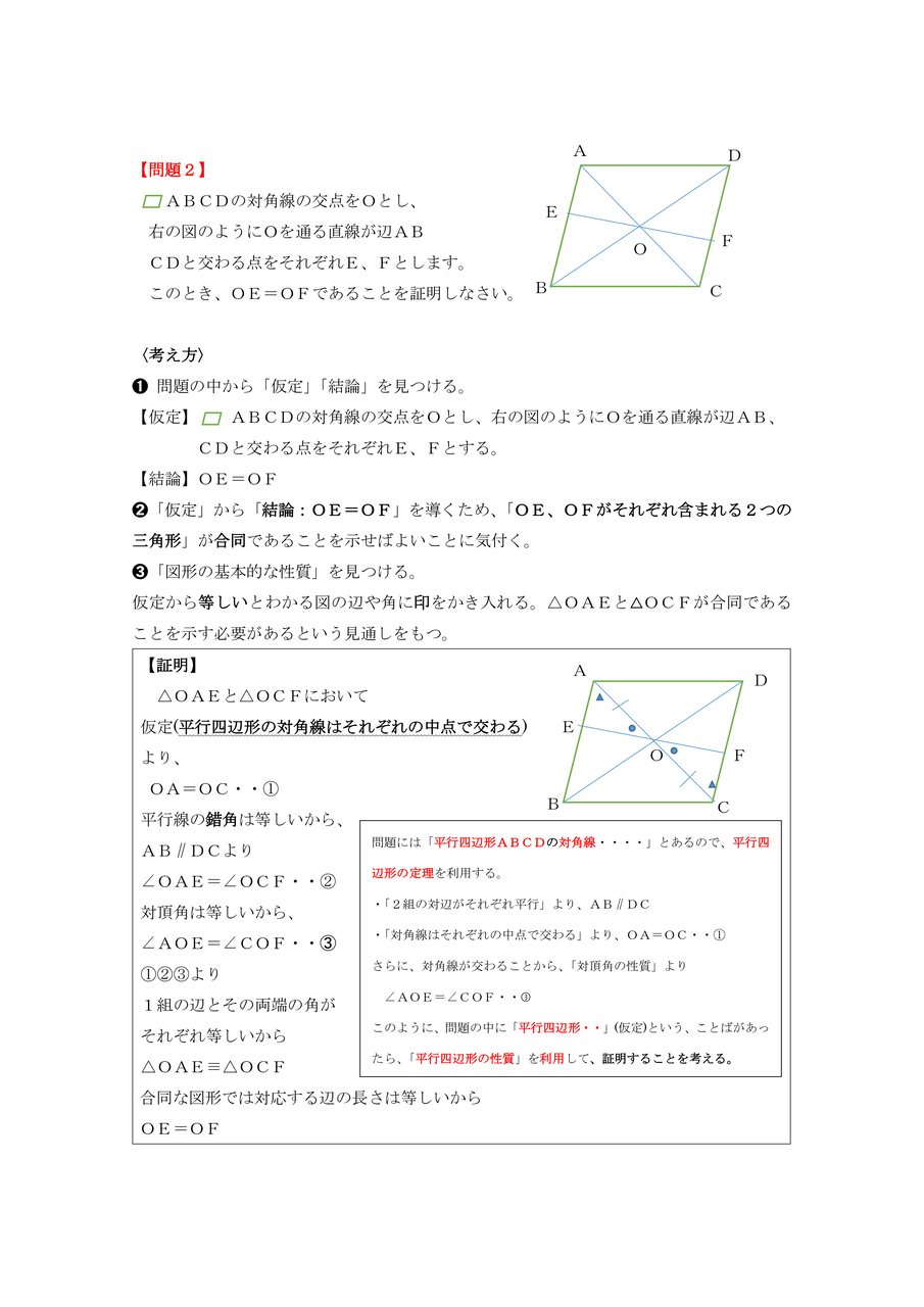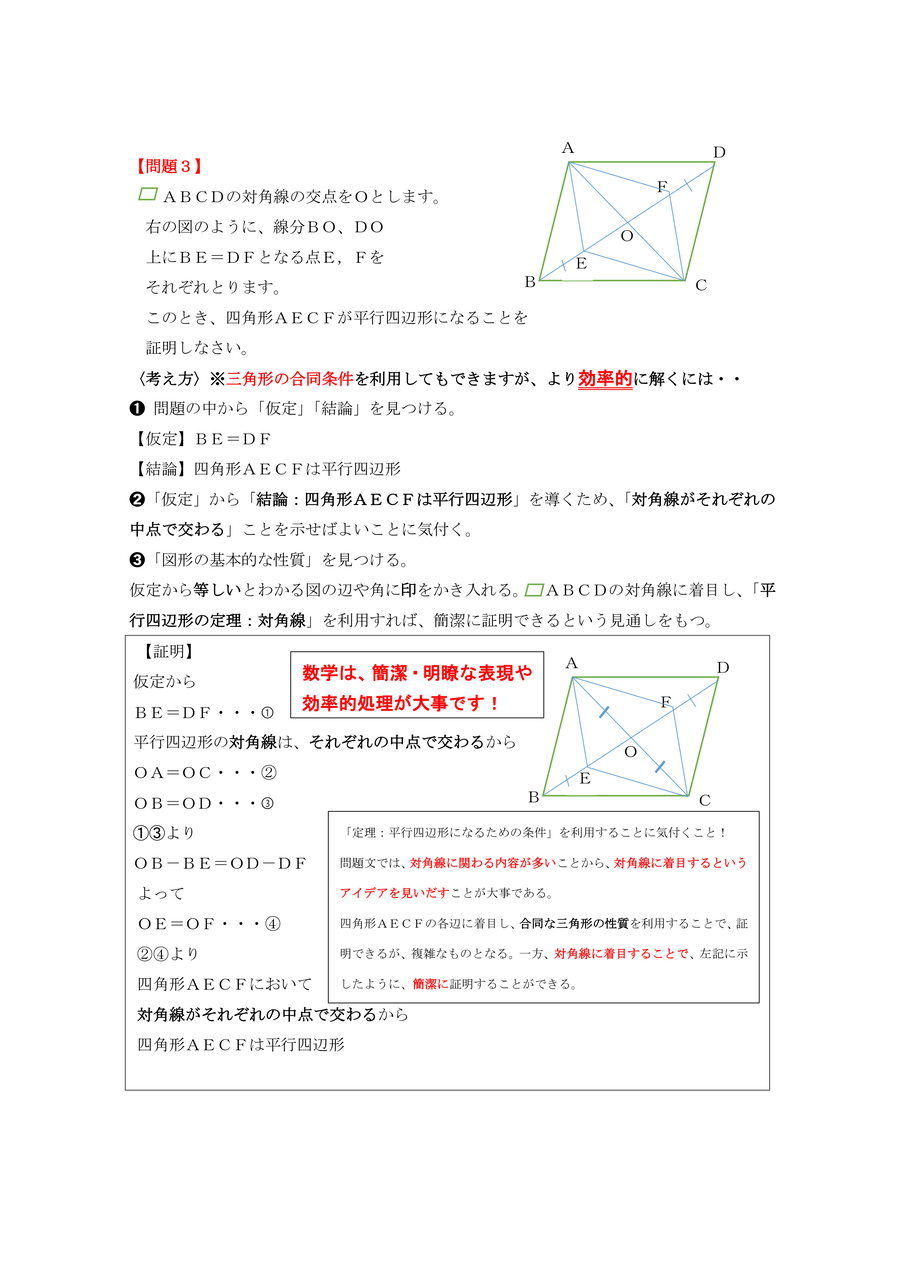「証明とは,仮定から結論を導くこと」です。これを理解していれば,「証明は,何を,どうすればよいか」が分かるのです。これまで地道に学んできた人は,「なるほど!」と納得できると思います。